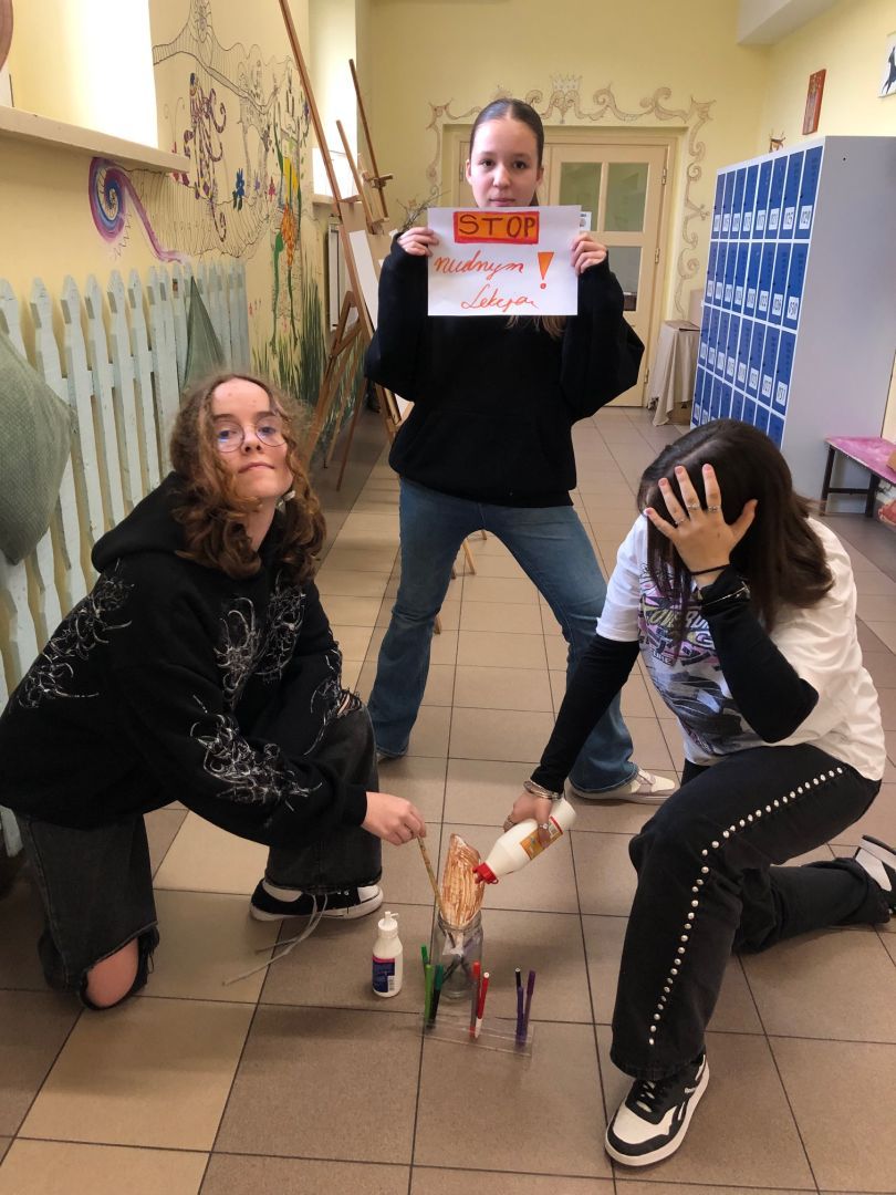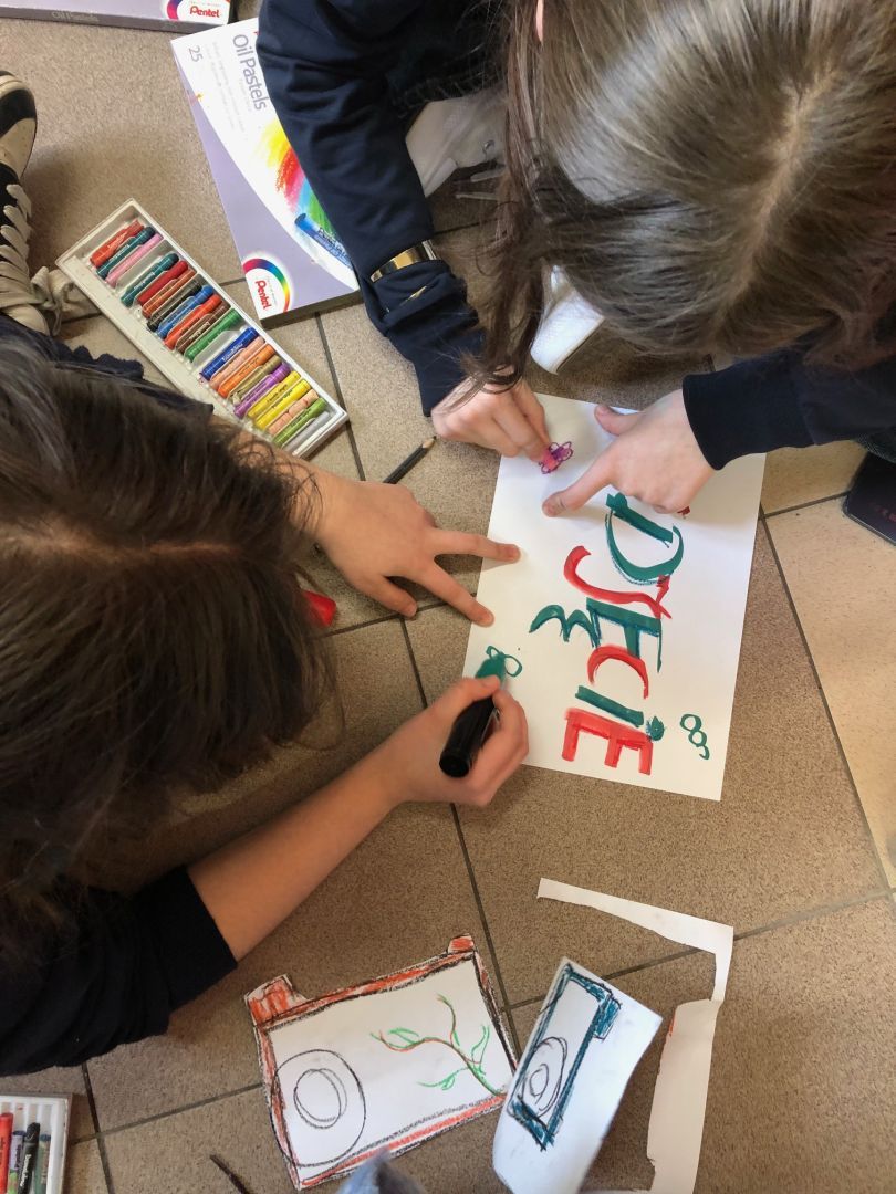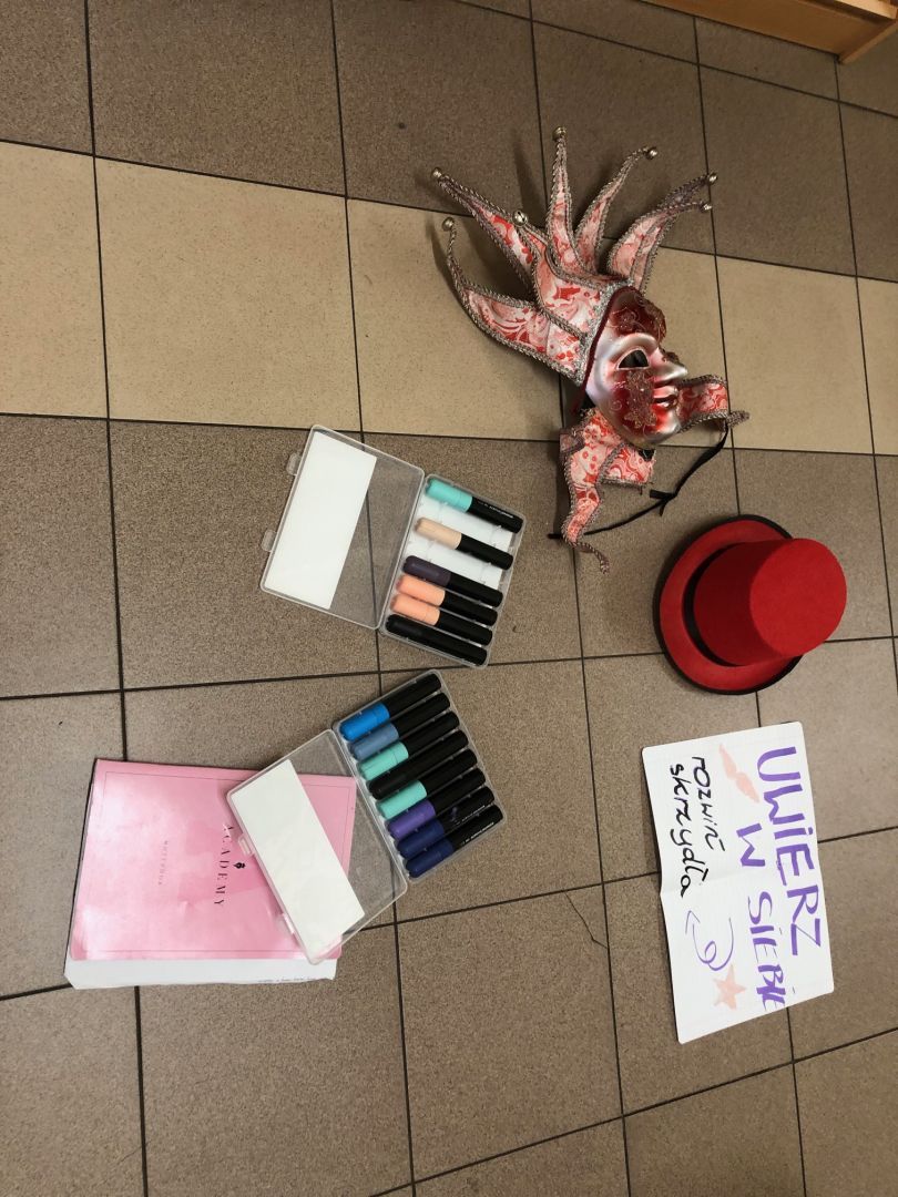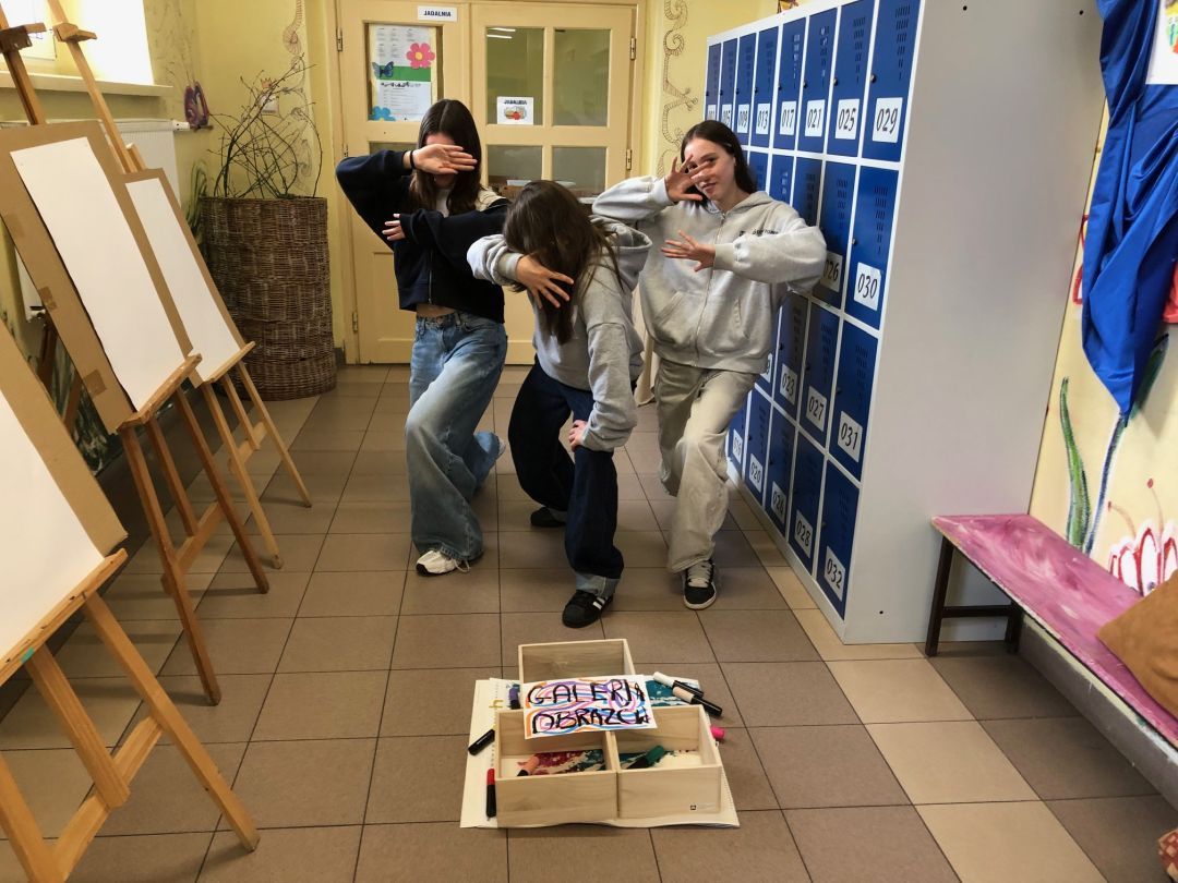 Z okazji obchodzonego dzisiaj Międzynarodowego Dnia Teatru, klasa 7 a na lekcji plastyki w twórczej gorączce i szaleństwie form oraz kolorów próbowała scharakteryzować pojęcie „ happening artystyczny”. Czy się udało? Chyba tak! Moc sprawcza była ogromna, a energii kosmicznej w ilości Mega 100 procent porażajacej wszystkie zmysły. Tematyka happeningu wielowarstwowa, wypełniająca obszary historii szkoły, dokumenty zdjęciowe, dobrostan pracowni plastycznej, jak i świadomość bycia istotą społeczności SP 1 im. Królowej Jadwigi. Super zabawa, wspaniałe pomysły na autoprezentację i odejście od realu. Brawa Kochani!