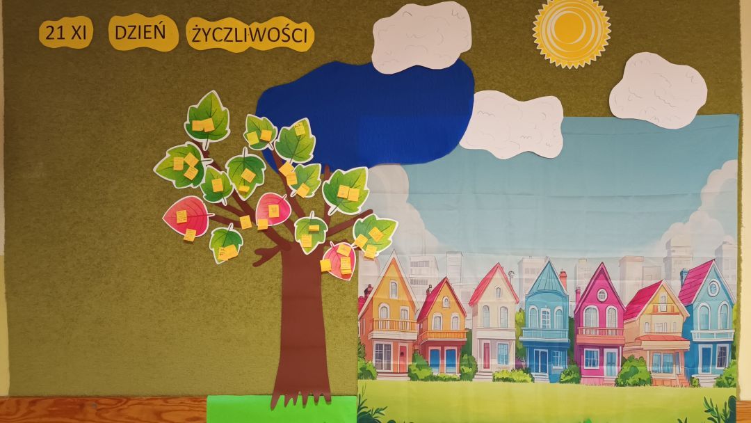 21 listopada obchodziliśmy Dzień Życzliwości. Podczas zajęć świetlicowych odbyliśmy spotkanie promujące życzliwość i czynienie dobra na co dzień. Po przeczytaniu krótkiej bajki pt. „Królestwo życzliwości, czyli krótka bajka o tym, jak być powinno” przeprowadziliśmy rozmowę na temat potrzeby bycia życzliwym, wzbudzania pozytywnych emocji. Podkreślaliśmy, jak ważna jest dla drugiego człowieka potrzeba szacunku, serdeczności i uśmiechu, jak przyjemnie jest usłyszeć i powiedzieć drugiej osobie miłe słowa. Na zakończenie ozdobiliśmy drzewko życzliwości karteczkami „dobrych słów”. Teraz jesteśmy pewni, że „Najlepszym lekarstwem, którego nie sposób przedawkować jest życzliwość dla drugiego człowieka”.