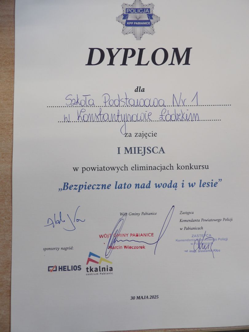 I Miejsce w powiecie w konkursie „Bezpieczne lato nad wodą i w lesie” - rozdanie nagród