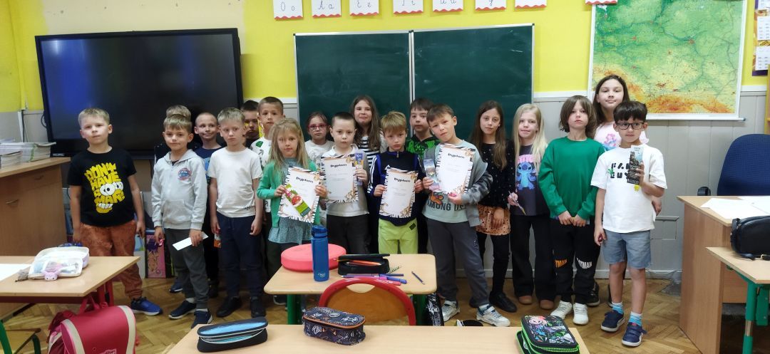 W dniu 29 maja 2025r. w klasie 1a odbył się klasowy konkurs zatytułowany „Wiersze pana Tuwima”. Uczniowie rywalizowali ze sobą w 4-osobowych grupach. By zwyciężyć dzieci musiały wykazać się bardzo dobrą znajomością wybranych wierszy Juliana Tuwima. Celem konkursu było rozbudzenie zainteresowania wierszami poety, ćwiczenie umiejętności pracy w grupie, umiejętności zapamiętywania oraz rozwijanie wyobraźni uczniów. Ponadto dzieci miały okazję poznać bliżej sylwetkę poety i wybrane fakty z jego życia, np. to, że Julian Tuwim urodził się w Łodzi, a na ulicy Piotrkowskiej można przysiąść obok niego na ławeczce…