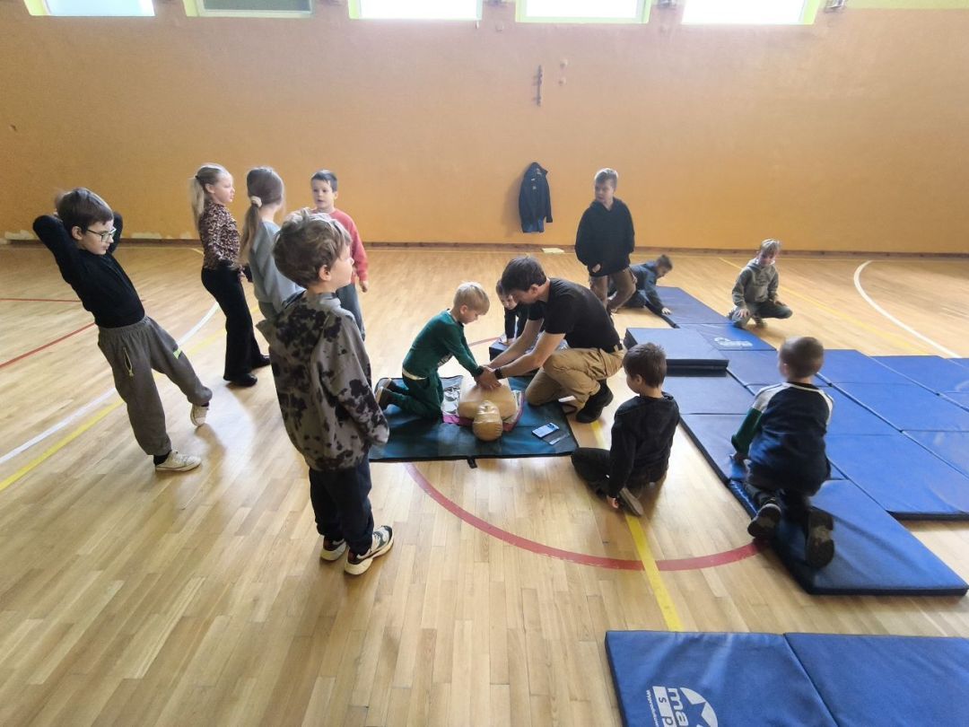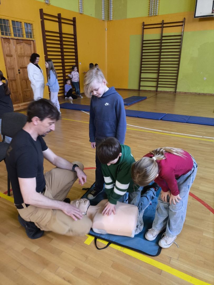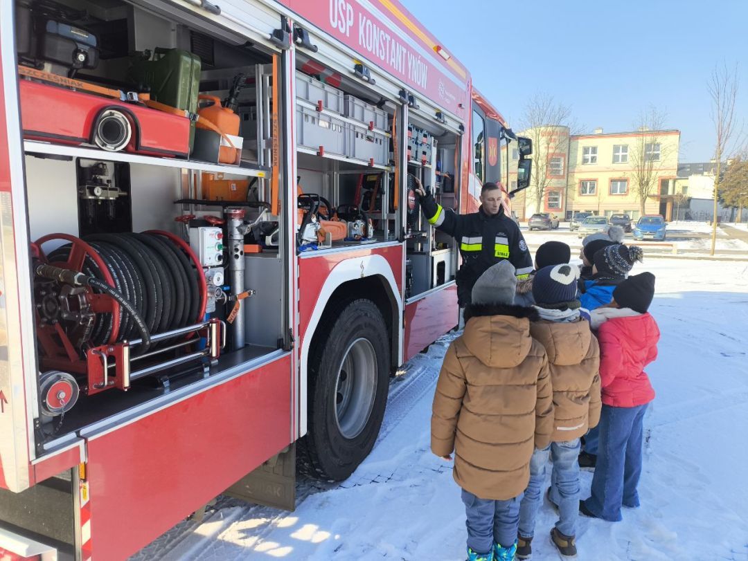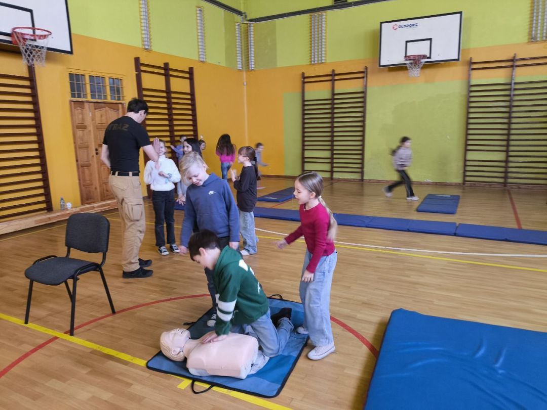 Dzień rozpoczął się od zbiórki, gdzie uczniowie zostali podzieleni na grupy. Po zapoznaniu się z harmonogramem i regulaminem, przeszliśmy do gier i zabaw integracyjnych. Po wspólnym śniadaniu dzieci uczestniczyły w warsztatach strażackich z uwzględnieniem informacji i nauki z udzielania I pomocy przedmedycznej. Ale najbardziej ekscytujące było to, jak pod nasza szkołę podjechał wóz strażacki na sygnale, a my mogliśmy dokładnie go sobie obejrzeć, dotykać sprzętu i zadawać mnóstwo pytań. Strażacy z OSP w Konstantynowie Łódzkim byli bardzo dla nas cierpliwi i z uśmiechem spędzili z nami czas. Dzień zakończyliśmy aktywnościami sportowymi, które były świetną okazją do ruchu i współpracy w grupach.