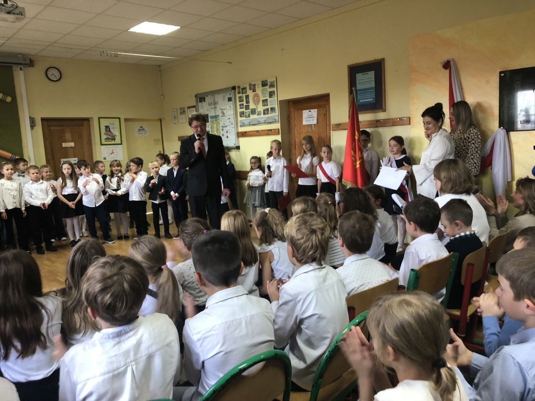 Na ceremonię przybyli zaproszeni goście: Burmistrz Konstantynowa Łódzkiego Robert Jakubowski, Przewodnicząca Rady Rodziców Monika Stolińska, dyrekcja szkoły, nauczyciele i rodzice uczniów klas pierwszych. Uroczystość pasowania rozpoczęła się wystąpieniami dyrektora szkoły Artura Śnieguckiego oraz zaproszonych gości, którzy powitali wszystkich zebranych i skierowali gorące słowa do pierwszoklasistów. Uczniowie klas I a, I b przedstawili program artystyczny, w którym zaprezentowali swoje umiejętności recytatorskie i wokalne. Najważniejszym punktem uroczystości było złożenie przysięgi przez pierwszaków. Ślubowanie złożone na sztandar szkoły i pasowanie symbolicznym ołówkiem przez Pana Dyrektora oficjalnie zakończyło okres próby i przypieczętowało przynależność uczniów klas pierwszych do naszej szkoły. Na pamiątkę tego doniosłego wydarzenia dzieci otrzymały okolicznościowe dyplomy a także upominki ufundowane przez Radę Rodziców i Burmistrza. Po zakończeniu części oficjalnej wszyscy uczestnicy zostali zaproszeni do klas na słodki poczęstunek przygotowany przez rodziców.