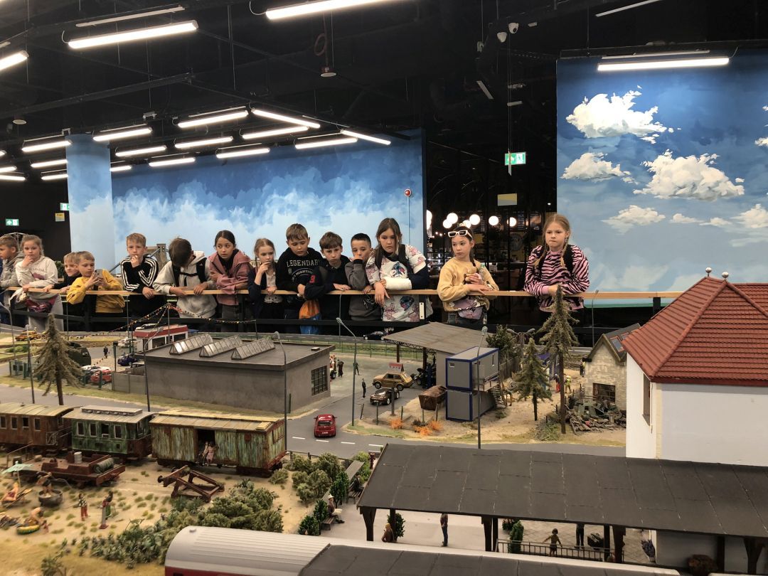 W czwartek 08.05.2025 r. uczniowie klas 3a i 3b wyruszyli na wycieczkę do Wrocławia. Pierwszym punktem wyjazdu było Muzeum Kolejkowo Wrocław oraz poznanie fascynującego świata w miniaturze. To miejsce okazało się prawdziwym rajem dla miłośników modelarstwa. Dzieci zobaczyły dokładnie odwzorowane krajobrazy Wrocławia i wybranych miast Dolnego Śląska oraz tramwaje i pociągi poruszające się po makietach, które zachwycały wyobraźnię. Wzięli także udział w warsztatach modelarskich, podczas których powstawały kolorowe miniatury kamienic.